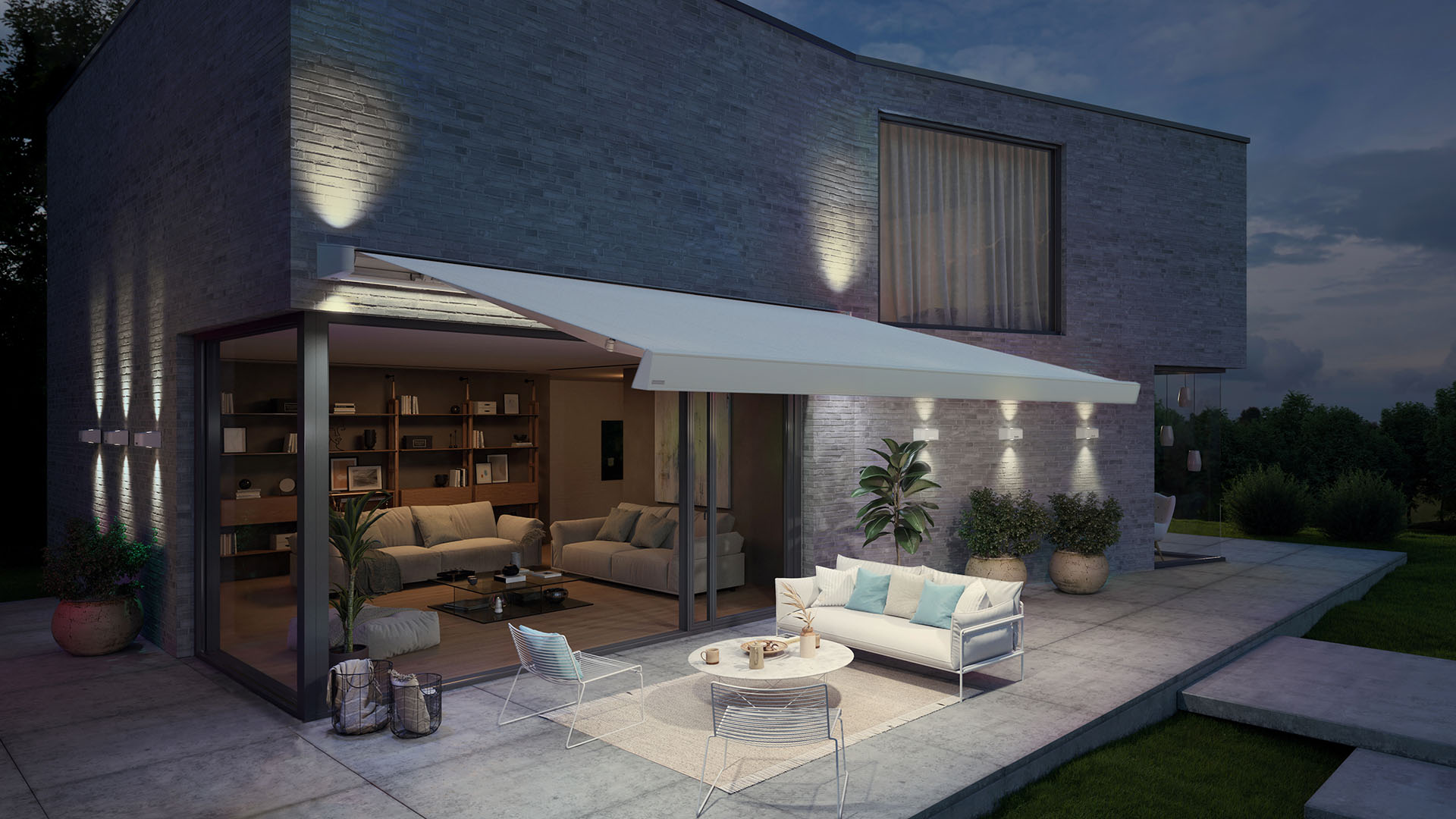 Bühne frei für die neue Kassettenmarkise markilux MX-4. Komponiert für die Beschattung großer Flächen, überzeugt sie mit ihrer avantgardistischen Gestaltung und der umlaufenden Sichtblende. Produktdesign – ästhetisch schön und funktional. Mit den innovativen Beleuchtungsoptionen und den zusätzlichen Wandleuchten erstrahlt sie in den Abendstunden und sorgt für eine spektakuläre und zauberhafte Lichtstimmung. Vorhang auf für eine große Komposition.