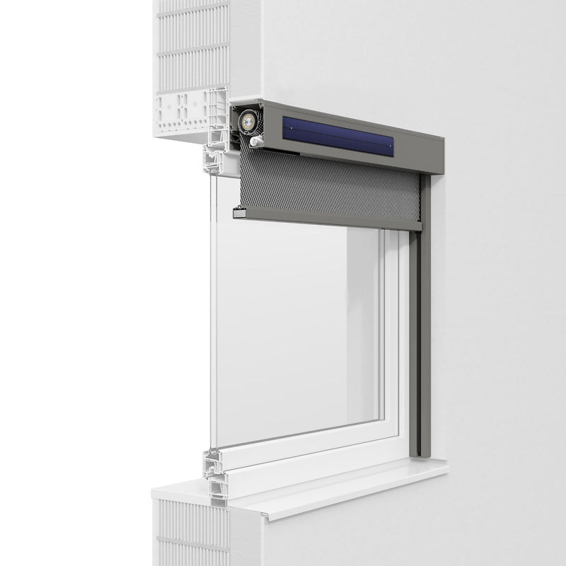 Sie können Ihren motorisierten ROMA Sonnenschutz auch mit Solarantrieb und Speicherakku betreiben. Das Solarmodul in der neuen Ausführung "Somfy io Funk" oder in der bekannten Ausführung „Elero Funk“ lässt sich, je nach Bausituation, direkt auf den Kasten oder an die Hauswand montieren.